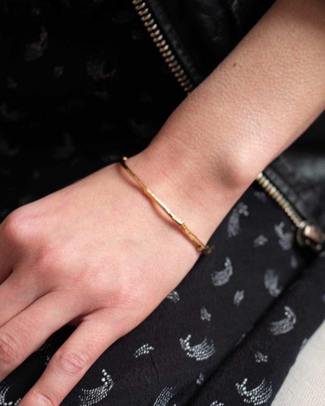 Vergoldetes Armband von TomShot mit Rosenzweig. Das Armband hat ein Verlängerungsstück von ca. 2 cm.